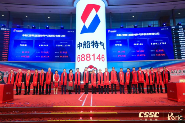 4月21日,中國船舶集團(tuán)有限公司旗下中船(邯鄲)派瑞特種氣體股份有限公司(簡稱:中船特氣,證券代碼:688146)首次公開發(fā)行A股上市儀式在上海證券交易所舉行。這是中國船舶集團(tuán)旗下第12家上市公司,也是集團(tuán)公司重組后首家在科創(chuàng)板公開發(fā)行A股的上市公司。中國船舶集團(tuán)黨組書記、董事長溫剛出席儀式,黨組成員、總會計(jì)師賈海英出席儀式并致辭,黨組成員、副總經(jīng)理盛紀(jì)綱出席儀式。