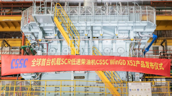 7月22日,由中國船舶集團有限公司旗下中船動力(集團)有限公司自主研發(fā)、大連船用柴油機有限公司建造的全球首臺機載SCR(選擇性催化還原系統(tǒng))船用低速機CSSC WinGD X52正式向全球發(fā)布。工信部黨組成員、總工程師田玉龍,中國船舶集團黨組副書記、總經(jīng)理楊金成出席發(fā)布儀式并講話。國家相關部委、地方政府、船級社、航運公司、造船企業(yè)等相關領導和專家出席發(fā)布儀式。