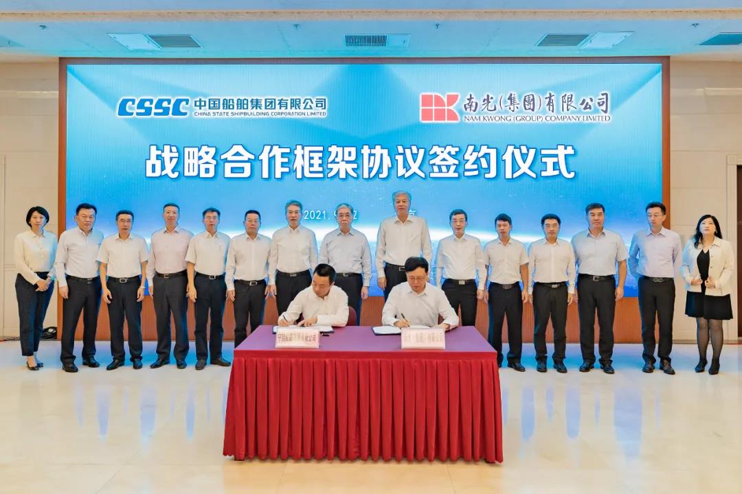 9月22日,中國(guó)船舶集團(tuán)有限公司與南光(集團(tuán))有限公司在京簽署戰(zhàn)略合作框架協(xié)議。中國(guó)船舶集團(tuán)黨組書(shū)記、董事長(zhǎng)雷凡培,南光(集團(tuán))董事長(zhǎng)傅建國(guó)出席簽約儀式。中國(guó)船舶集團(tuán)黨組成員、副總經(jīng)理盛紀(jì)綱,南光(集團(tuán))副總經(jīng)理王彤彥分別代表雙方簽約。