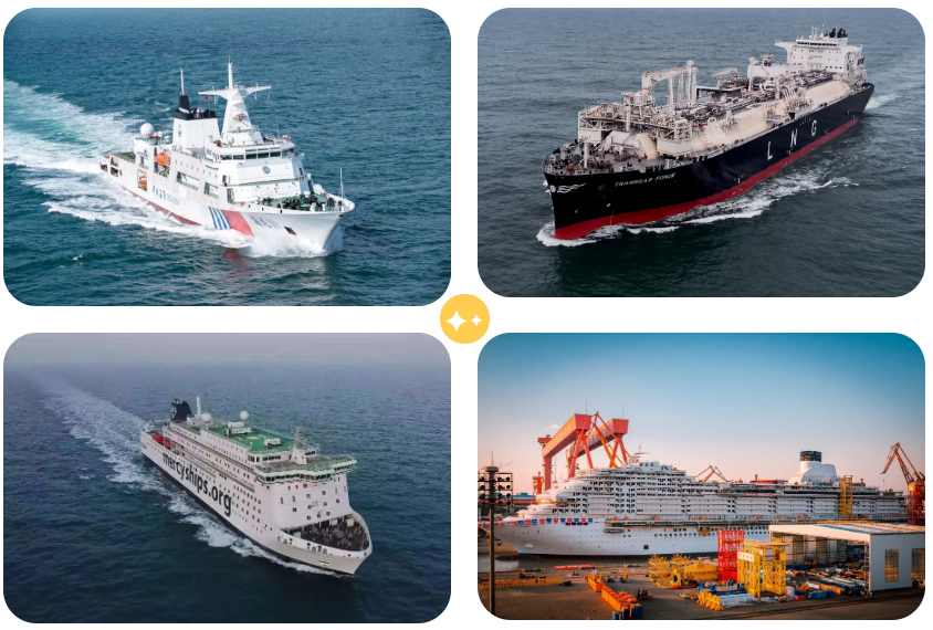 ——廣船國際交付3 型4艘豪華客滾船,中國船舶集團制造的市場品牌影響力不斷提升;江南造船交付1 艘國內(nèi)最大海洋綜合科考實習船“中山大學”號、黃埔文沖交付1艘萬噸級海事巡邏船,標志著中國船舶集團在公務(wù)科考船領(lǐng)域取得了又一突破;大船重工交付一艘世界最大最先進的民用醫(yī)院船、黃埔文沖交付2 艘全球最大火車運輸船、中船澄西交付2 艘910RFEU 冷藏集裝箱船,彰顯了中國船舶集團在高端特種船舶等領(lǐng)域蓬勃發(fā)展的先發(fā)優(yōu)勢和產(chǎn)品轉(zhuǎn)型升級的豐碩成果。