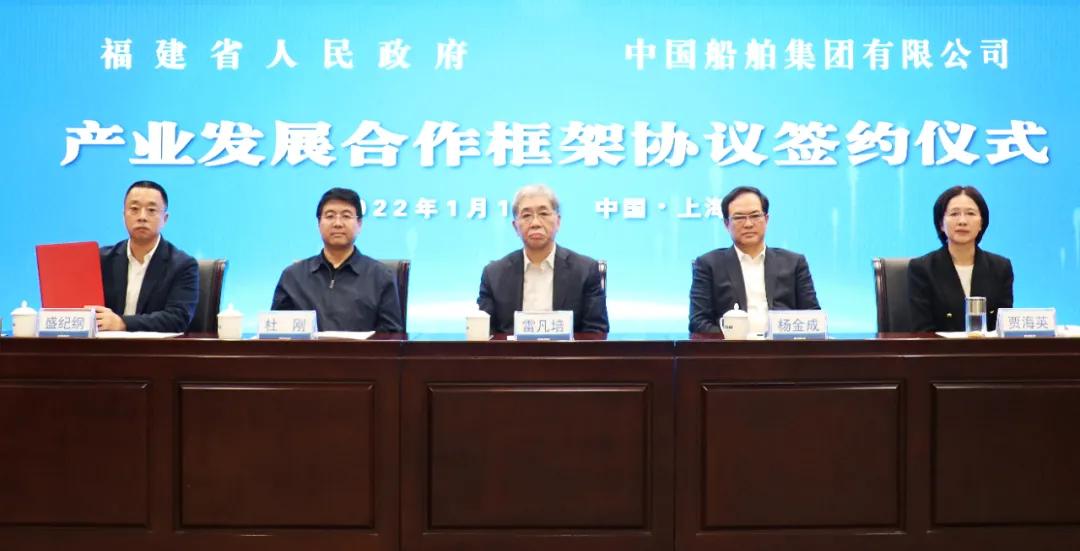 1月18日,中國船舶集團(tuán)有限公司與福建省人民政府通過“云簽約”方式簽署戰(zhàn)略合作協(xié)議。中國船舶集團(tuán)黨組書記、董事長(zhǎng)雷凡培,黨組副書記、總經(jīng)理?xiàng)罱鸪桑h組副書記、董事杜剛,黨組成員、總會(huì)計(jì)師賈海英,黨組成員、副總經(jīng)理盛紀(jì)綱;福建省委書記尹力,省委副書記、代省長(zhǎng)趙龍,省委常委、常務(wù)副省長(zhǎng)郭寧寧,省委常委、秘書長(zhǎng)吳偕林,副省長(zhǎng)康濤出席簽約儀式。盛紀(jì)綱、郭寧寧分別代表雙方在協(xié)議上簽字。
