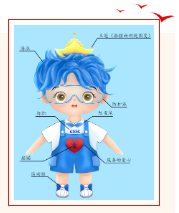 設(shè)計說明:圍繞“愛在深藍(lán)”志愿服務(wù)為主題設(shè)計了一名小男孩IP形象,深藍(lán)色的發(fā)色呼應(yīng)主題。紅色的帽子和三角巾突出志愿服務(wù)的形象與船舶青年熱血有愛志愿精神。雪白的T恤在胸口印有“愛在深藍(lán)”品牌LOGO,彰顯小男孩的身份與純潔進(jìn)步的“艦船報國、向海圖強”的船舶青年志向。可愛且色塊明顯的IP形象設(shè)計,通過紅藍(lán)撞色使IP形象更具有吸引力。小男孩形象設(shè)計簡潔,方便進(jìn)行后期表情包、日歷、書簽等2D周邊設(shè)計,與3D實物生產(chǎn)。