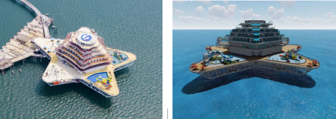 以濱海城市為依托,該方案重點建設需求旺盛、基礎好、見效快的“海洋文旅+深海養殖+海上風電+海洋信息管網”4個要素單元,釋放旅游、養殖、綠色能源耦合效應。綜合體采用模塊化設計、區域化協同部署,由濱海向深遠海帶狀輻射,布局建設游輪游艇群、養殖文旅平臺、深海養殖產業園、分布式海上風電場及智能微電網、深海移動養殖工廠和海洋信息管網等風漁文旅結合項目。以郵輪游艇連接海上設施,構建海上旅游娛樂交通網,以中小型郵輪航線實現沿海城市綜合體間串聯,構建沿海城市海上旅游觀光帶,同時培育郵輪與康養休閑岸海互動融合模式,捕捉、帶動、滿足多元化潛在消費需求,打造風漁文旅等一二三產業融合新業態,形成沿海藍色海洋經濟帶。