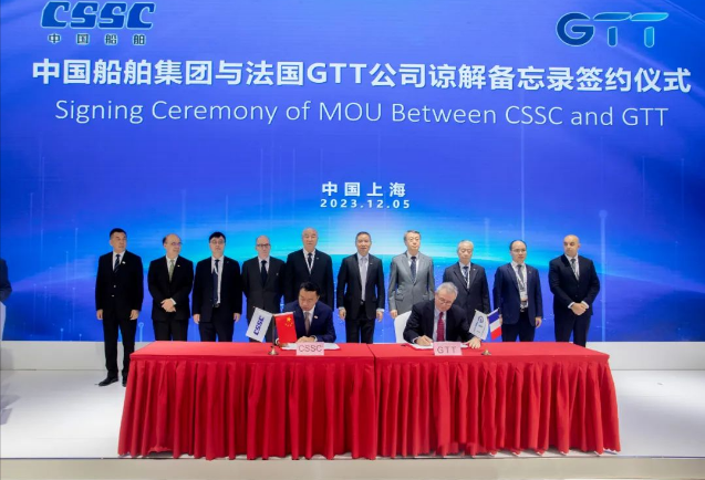 在展會現場,辛國斌、溫剛等參觀了集團公司展臺,并共同見證了中國船舶集團與法國GTT公司簽訂2023版諒解備忘錄(MOU)、大連造船海洋CCUS產業鏈產品頒證、5萬立方米浮式液態二氧化碳儲存及注入裝置船型AIP證書頒發儀式、2萬及1.2萬立方米液態二氧化碳運輸船船型AIP證書頒發儀式。