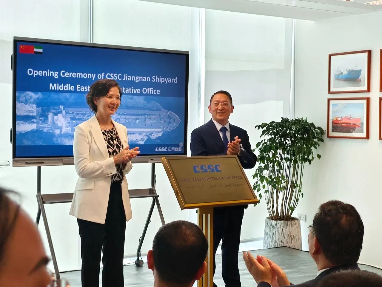 10月10日,中國船舶集團江南造船中東代表處揭牌儀式,在阿聯酋首都阿布扎比舉行。