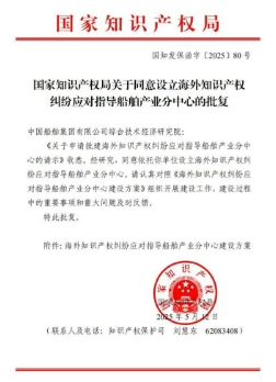 近日,由中船集團(tuán)所屬中船綜合院(集團(tuán)公司知識產(chǎn)權(quán)中心)申報的海外知識產(chǎn)權(quán)糾紛應(yīng)對指導(dǎo)船舶產(chǎn)業(yè)分中心,獲得國家知識產(chǎn)權(quán)局批準(zhǔn)設(shè)立。截至目前,該中心是國家知識產(chǎn)權(quán)局在全國設(shè)立的第五家產(chǎn)業(yè)分中心,也是船海產(chǎn)業(yè)領(lǐng)域唯一一家分中心。該中心的設(shè)立,為船舶企業(yè)“走出去”提供全鏈條知識產(chǎn)權(quán)保障,助力船舶產(chǎn)業(yè)在海外市場中更好應(yīng)對知識產(chǎn)權(quán)挑戰(zhàn)。