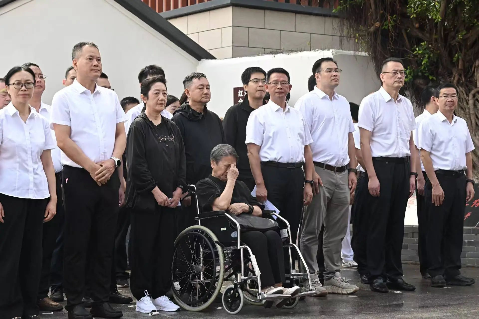 9時,人們在黃旭華院士少年時代求學成長的紅樓前舉行了追思儀式。現場,黃旭華院士的遺像擺放在紅樓大門前,黃旭華院士家人和生前同事、好友以及家鄉干部群眾、師生代表一起深情回顧了他的一生。隨后,大家一起進入紅樓參觀紀念黃旭華院士生平事跡展。
