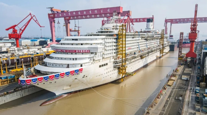 “愛(ài)達(dá)·花城號(hào)”由中船集團(tuán)旗下外高橋造船于2022年8月開(kāi)工建造,去年4月入塢搭載,今年1月實(shí)現(xiàn)全船貫通。“愛(ài)達(dá)·花城號(hào)”長(zhǎng)341米、寬37.2米、約14.19萬(wàn)總噸,相比首艘國(guó)產(chǎn)大型郵輪“愛(ài)達(dá)·魔都號(hào)”體量更大、建造物量更多,對(duì)設(shè)計(jì)建造管理能力提出了更高要求。目前,“愛(ài)達(dá)·花城號(hào)”整體建造進(jìn)度已超過(guò)70%,比“愛(ài)達(dá)·魔都號(hào)”起浮時(shí)總進(jìn)度提前12%,結(jié)構(gòu)總裝周期縮短至9個(gè)月,標(biāo)志著我國(guó)大型郵輪建造技術(shù)邁上了新臺(tái)階。