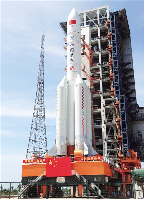 在海南文昌航天發射場拍攝的長征五號遙二火箭。 張文軍攝 (新華社發)