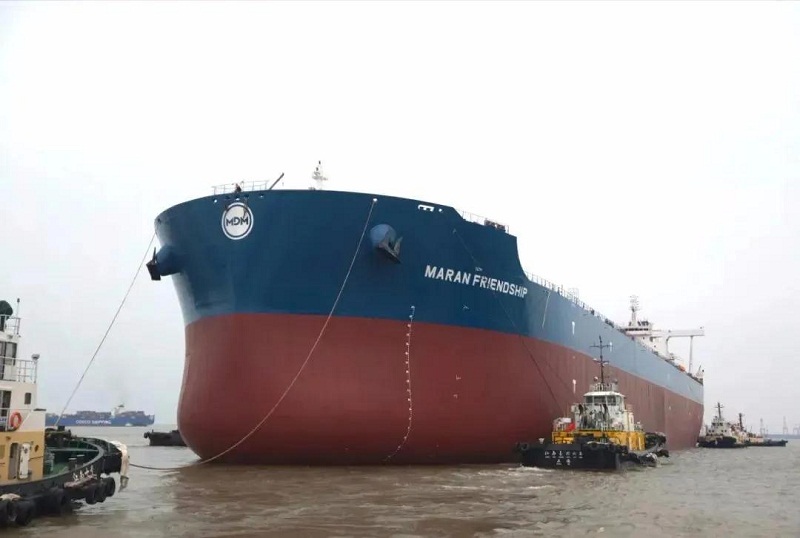 ????4月18日,中國船舶集團旗下外高橋造船為希臘MDM航運公司建造的系列船第四艘,也是最后一艘21萬噸散貨船(H1455)順利出塢,標志著外高橋造船與該船東合作的