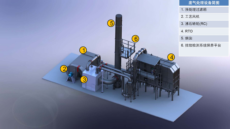 ????“多轉(zhuǎn)輪+RTO”處理工藝:兩套或多套沸石轉(zhuǎn)輪作為吸附濃縮裝置,1臺(tái)RTO(蓄熱式氧化爐,具備一定蓄熱能力的燃燒爐,通過(guò)高溫氧化的方式將氣體中的可燃物質(zhì)進(jìn)行氧化,達(dá)到使氣體凈化的目的)作為燃燒凈化裝置的VOCs處理工藝。