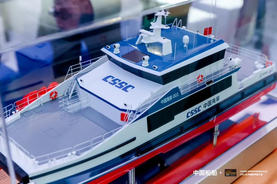 在本屆風(fēng)能大會(huì)上,中國(guó)海裝與遠(yuǎn)舟科技聯(lián)合設(shè)計(jì)制造的國(guó)內(nèi)首艘30米級(jí)專業(yè)風(fēng)電運(yùn)維船發(fā)布。投運(yùn)后,該船將與中船海工101海上風(fēng)電安裝平臺(tái)一道,為海上運(yùn)維“保駕護(hù)航”。