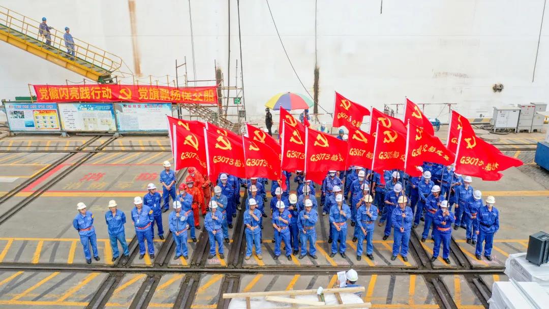 在集團公司會議精神的指引和“大干120天”攻堅活動號召下,廣船國際各個重點項目生產一線黨旗飄揚、黨徽閃耀,攻堅團隊奮勇爭先、信心滿滿,正在繼續向完成全年任務目標發起沖鋒。