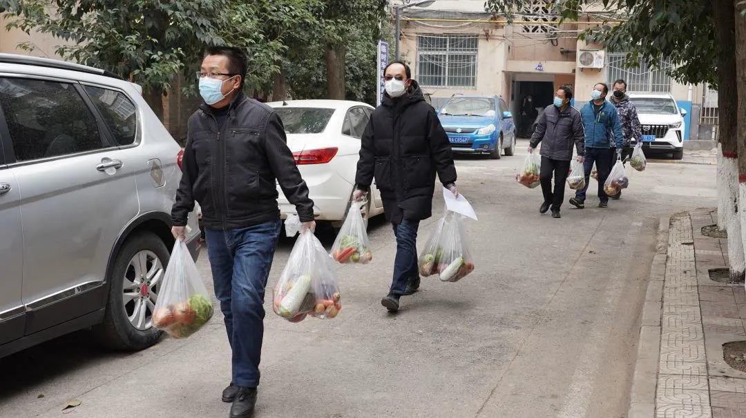 元旦前,東儀科工100余位黨員、職工火速集結(jié)組成志愿團(tuán)隊(duì),有序?qū)?6輛汽車運(yùn)來的物資進(jìn)行卸載、分裝,忙而不亂,將一袋袋蔬菜分樓棟、分單元送到居家隔離的住戶手中,確保3200余戶居民在新的一年到來之前收到政府的愛心物資,滿足基本生活需求。