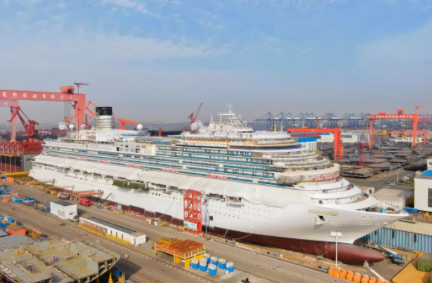 4月7日,由中國船舶集團旗下外高橋造船建造的國產首制大型郵輪順利完成減搖鰭設備碼頭系泊試驗。