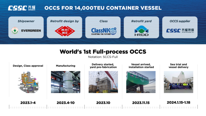 2024年4月底,“長頂輪”將在上海洋山港進行全球首次C型罐二氧化碳岸端卸載,這標志著齊耀環保OCCS將成功實現全流程零碳排放閉環,是船用碳捕集產業閉環中的里程碑式案例,將有效解決船東對加裝碳捕集系統的重要關切。