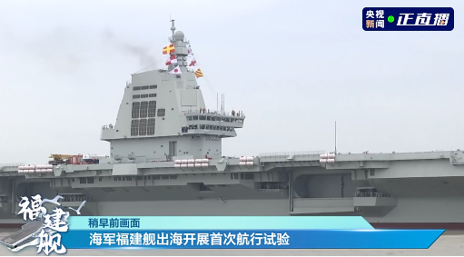 這其實(shí)是我國(guó)第三艘航空母艦福建艦2024年5月1日從上海江南造船廠碼頭解纜啟航,赴相關(guān)海域,開(kāi)展首次航行試驗(yàn)的畫(huà)面。