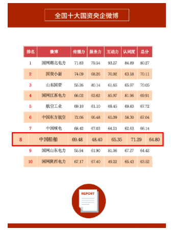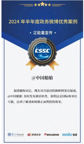 另外,日前2024上半年度政務(wù)微博影響力報(bào)告正式公布,@中國(guó)船舶獲評(píng)“全國(guó)十大國(guó)資央企微博”。@中國(guó)船舶通過(guò)創(chuàng)新傳播形式,讓權(quán)威性信息觸達(dá)民眾,提供高效高質(zhì)的資訊和服務(wù),為助力集團(tuán)公司高質(zhì)量發(fā)展注入動(dòng)能。