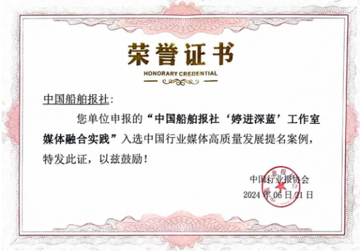 中國(guó)船舶報(bào)社“婷進(jìn)深藍(lán)”工作室,媒體融合實(shí)踐獲評(píng)中國(guó)行業(yè)媒體高質(zhì)量發(fā)展提名案例。