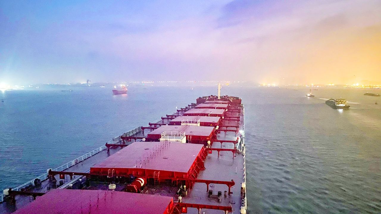 84500噸多用途船總長225米,該型船適應性強、裝載效率高,能運輸紙漿、集裝箱、新能源汽車等多種貨品。同時,該型船環保性能優越,擁有高壓SCR系統和開式脫硫塔等環保設備,經濟性突出。