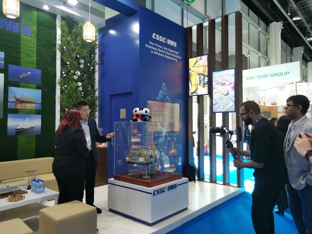 這是外高橋造船首次參加該展。該公司攜3000米深水半潛式鉆井平臺“海洋石油981”號、國產首艘大型郵輪“愛達·魔都號”、JU2000E型自升式鉆井平臺等明星產品以及最新研發的SJ400型自升式鉆井平臺船模亮相。其中,SJ400型自升式鉆井平臺是外高橋造船結合中東海域特點自主研發的新一代400英尺自升式鉆井平臺。