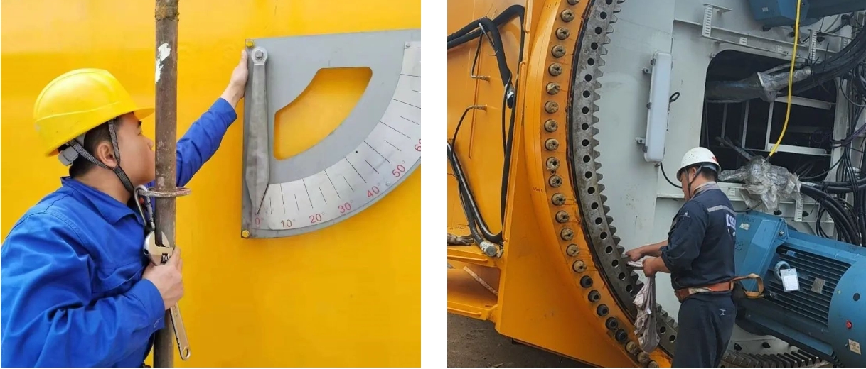 對安裝、調試負責人朱港來說,調試階段的技術整改簡直是這個項目的“至暗時刻”。2023年,“夢想”號50噸折臂起重機進入到調試階段,由于設計上的前所未有,以及兼顧閥件布置合理性、更換的便捷性,現場調試也面臨著重重困難。蓄能器抖動需重新加強、松繩裝置需重新調整、調試中系統崩潰、副鉤所有數據丟失……一個又一個的技術整改需求讓人失去動力和激情。