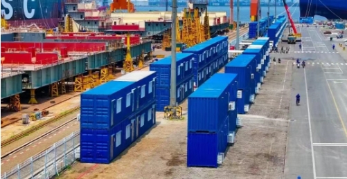 大船天津連續(xù)三年共投入800余萬元,分批購置300個(gè)集裝箱式休息室,內(nèi)部安裝空調(diào),為戶外作業(yè)員工搭建“夏能納涼、冬可取暖”的舒適休息場所;在“中船幸福驛站”里,50余臺(tái)制冰機(jī)在各生產(chǎn)一線不停運(yùn)轉(zhuǎn),為員工帶來絲絲涼意;食堂在每日午餐后迅速變身“臨時(shí)清涼驛站”,公共區(qū)域搭配按需取用的單人涼席,讓員工在餐后盡享片刻清涼;在露天作業(yè)現(xiàn)場配備成片的遮陽棚和冷風(fēng)機(jī),切實(shí)為員工撐起高溫下的“防護(hù)傘”。