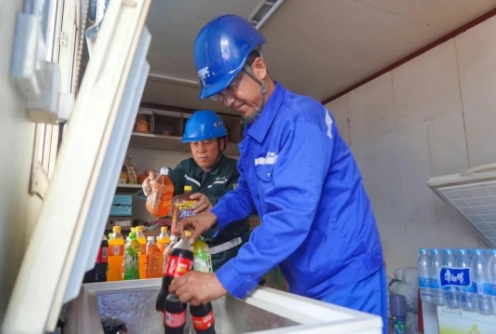 在飲食消暑保障上,大船天津構(gòu)建起全鏈條清涼補(bǔ)給體系。清涼解暑的綠豆湯成為員工餐桌上的“標(biāo)配”,供隨餐飲用;4000余箱瓶裝水以及大批藿香正氣水作為夏季防暑降溫物資配送至各部門、各協(xié)作單位班組;作業(yè)現(xiàn)場的冰柜里,清涼飲品隨時(shí)待取;為協(xié)作單位員工送上遮陽草帽,讓清涼關(guān)懷覆蓋每一位一線勞動(dòng)者。