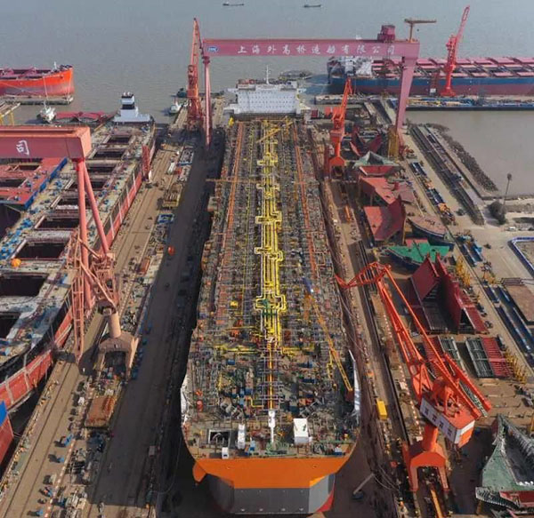 ????3月7日,中國船舶集團(tuán)所屬外高橋造船建造的一艘海上浮式生產(chǎn)儲(chǔ)油船(FPSO)順利出塢。自2月10日復(fù)工復(fù)產(chǎn)以來,在不到一個(gè)月的時(shí)間里,外高橋造船已先后完成了一艘11.4萬噸阿芙拉型成品油輪、一艘21萬噸紐卡斯?fàn)栃蜕⒇洿鸵凰?8萬噸好望角型散貨船開工建造,兩艘21萬噸紐卡斯?fàn)栃蜕⒇洿鸵凰?8萬噸好望角型散貨船完成試航,一座JU2000E型海上自升式鉆井平臺(tái)交付,一艘平臺(tái)供應(yīng)船(PSV)完工簽字,兩艘15.6萬噸蘇伊士型原油輪建造合同簽署等生產(chǎn)節(jié)點(diǎn)。