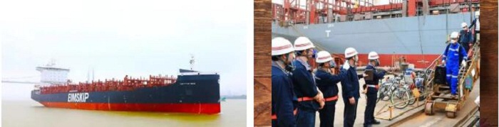 ?? H5647船是2150TEU(標(biāo)準(zhǔn)集裝箱)系列船的第三艘,總長(zhǎng)179.4米,型寬30.95米,型深17.4米,滿載2150箱,設(shè)計(jì)吃水9米;配置了廢氣再循環(huán)(EGR)系統(tǒng)和脫硫系統(tǒng),可降低硫氮化合物的排放,滿足國(guó)際海事組織(IMO)Tier III 排放要求,是一艘綠色、環(huán)保的船舶。