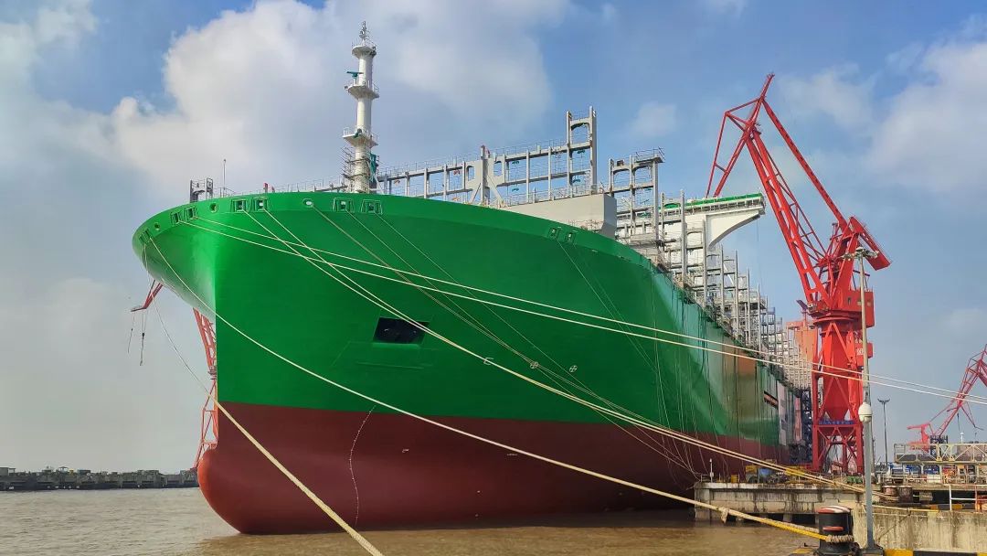 據悉,為長榮海運建造的5艘24000TEU超大型集裝箱船首制船于去年12月份出塢,計劃將于今年上半年交付,2號船正在塢內進行搭載作業,3號船已開工建造。為地中海航運建造的1號船已入塢搭載總裝,2、3號船進入平臺總組階段,4號船也已開工建造。全球最大箱船建造進入“滬東中華時間”。