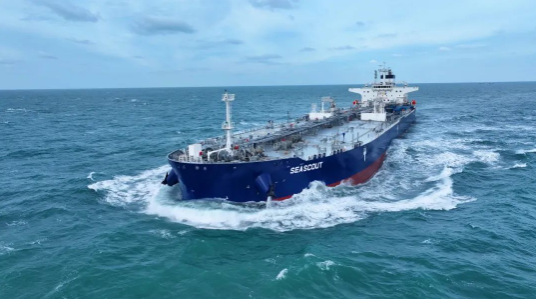 1月2日,新年的第一個工作日。由中國船舶集團旗下外高橋造船聯合中船貿易為希臘Thenamaris公司建造的11.4萬噸阿芙拉型成品油船系列首制船“海洋偵探”(SEASCOUT)號簽字交付,成為2025年率先達成交船目標的上海船企,實現新年開門紅。