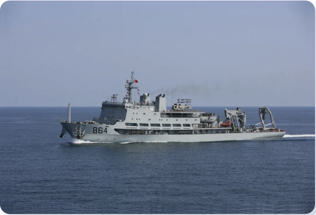 864艦是我國(guó)自主設(shè)計(jì)建造的首艘最新型綜合潛艇救援艦。該艦于2010年初服役,其主要任務(wù)是對(duì)失事潛艇實(shí)施援潛救生,還可以執(zhí)行各種潛水勤務(wù)及協(xié)助打撈作業(yè),以及對(duì)失事水面艦船和落水人員進(jìn)行救援等。