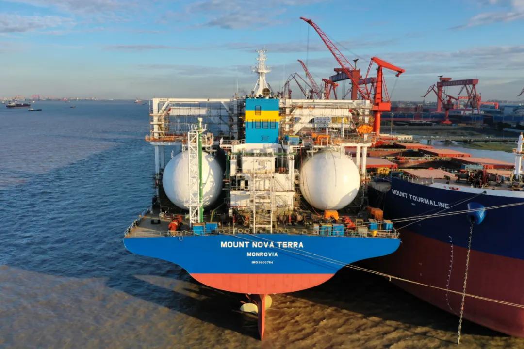 1月28日,中國船舶集團旗下外高橋造船自主研發,攜手中船貿易,為新加坡EPS公司建造的全球首艘液化天然氣(LNG)雙燃料動力20.9萬載重噸紐卡斯爾型散貨船