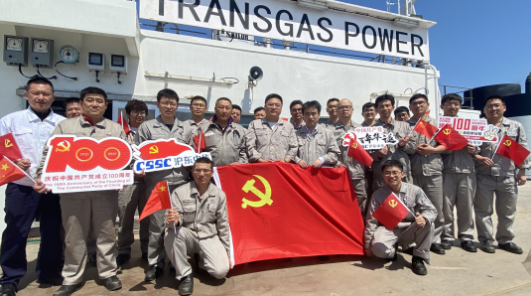 4月6~12日,在國(guó)內(nèi)首款大型LNG-FSRU首制船試航期間,滬東中華試航團(tuán)隊(duì)22名黨員、團(tuán)員多次開(kāi)展黨史學(xué)習(xí)教育。