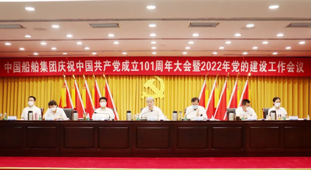 7月1日,中國船舶集團有限公司召開慶祝中國共產黨成立101周年大會暨2022年黨的建設工作會議,學習貫徹習近平新時代中國特色社會主義思想,學習貫徹黨的十九大和十九屆歷次全會精神,弘揚偉大建黨精神,深刻領會“兩個確立”的決定性意義,號召集團公司全體黨員干部堅定不移以高質量黨建引領高質量發展,加快建設國際競爭力強的世界一流船舶集團,以優異成績迎接黨的二十大勝利召開。中國船舶集團黨組書記、董事長雷凡培出席會議并講話,黨組副書記、總經理楊金成主持會議并通報了2021年度成員單位黨組織落實全面從嚴治黨主體責任考核評價結果,黨組副書記、董事杜剛宣讀了集團公司“兩優一先”及“兩標兵一示范”表彰決定,黨組全體成員出席會議。