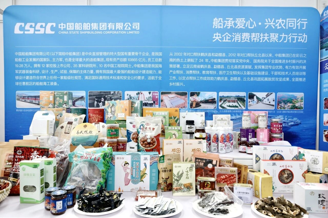 9月19日,以“央企攜手,興農惠民”為主題的第四屆“央企消費幫扶興農周”活動在北京正式啟動。中國船舶集團有限公司在同期舉行的特色農產品展銷會上精心布置了特色展區,現場展銷來自其定點幫扶的鶴慶、勐臘、丘北三縣的110款優質特色農產品。