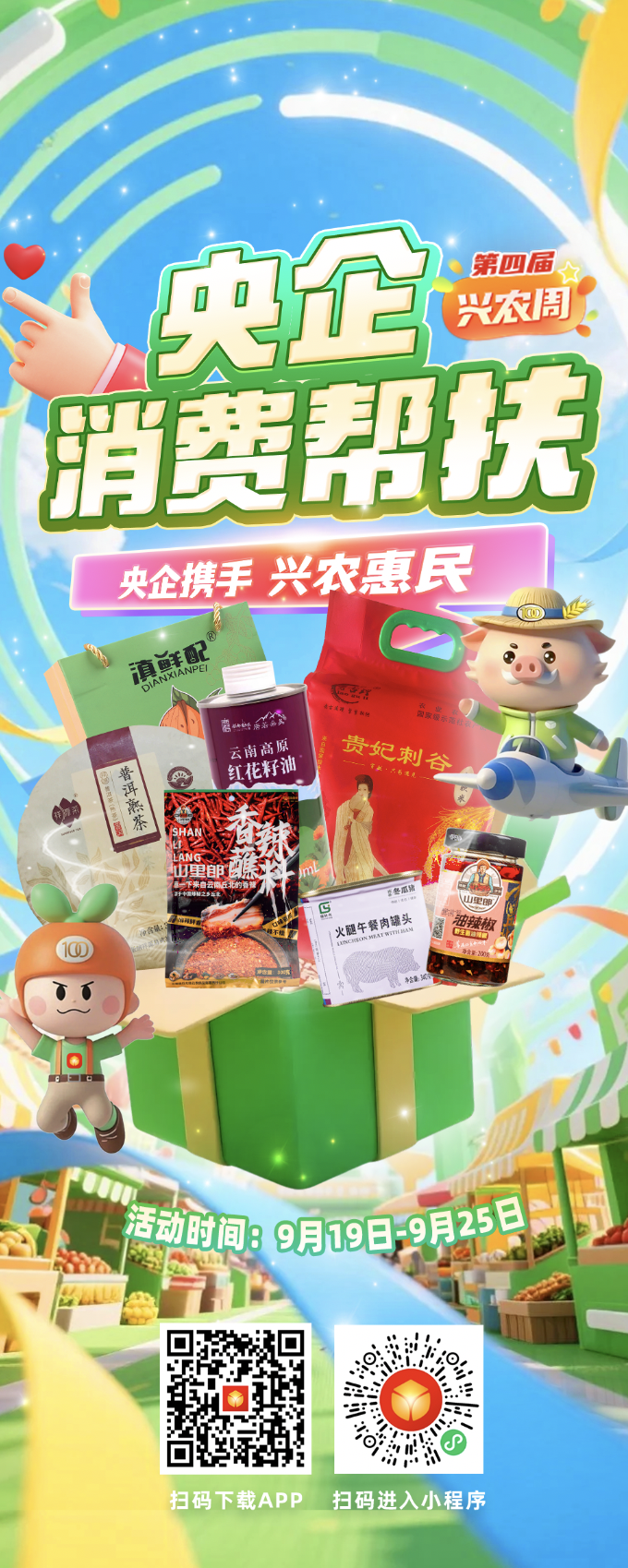 本屆“央企消費幫扶興農周”活動時間為9月19日~9月25日,發布了央企消費幫扶電商平臺助農大數據,線上開展限時秒殺、拼團采購、跨店滿減等促銷活動,線下舉辦特色農產品展銷會、創辦非遺等特色主題展,再搭配包括現場簽約、展位打卡等在內的活動,共同打造了一場“能看、能嘗、能買、能玩”的“興農”盛宴。
