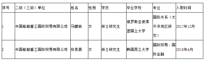 中國船舶重工集團有限公司擬接收留學回國人員信息的公示